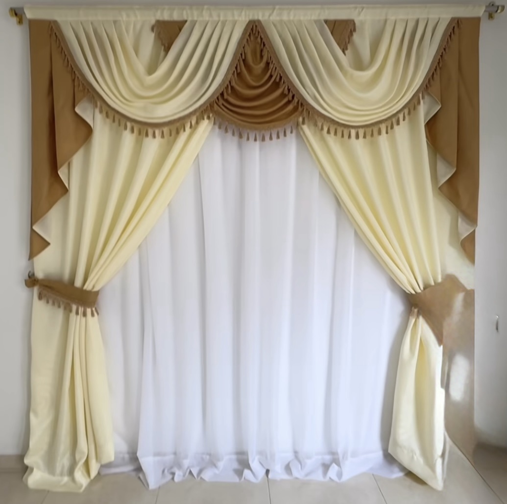 SET DRAPERIE CATIFEA, CULOARE CREM CU MARO DESCHIS, PERDEA TRIPLUVOAL ALB. Cod. Produs:80023