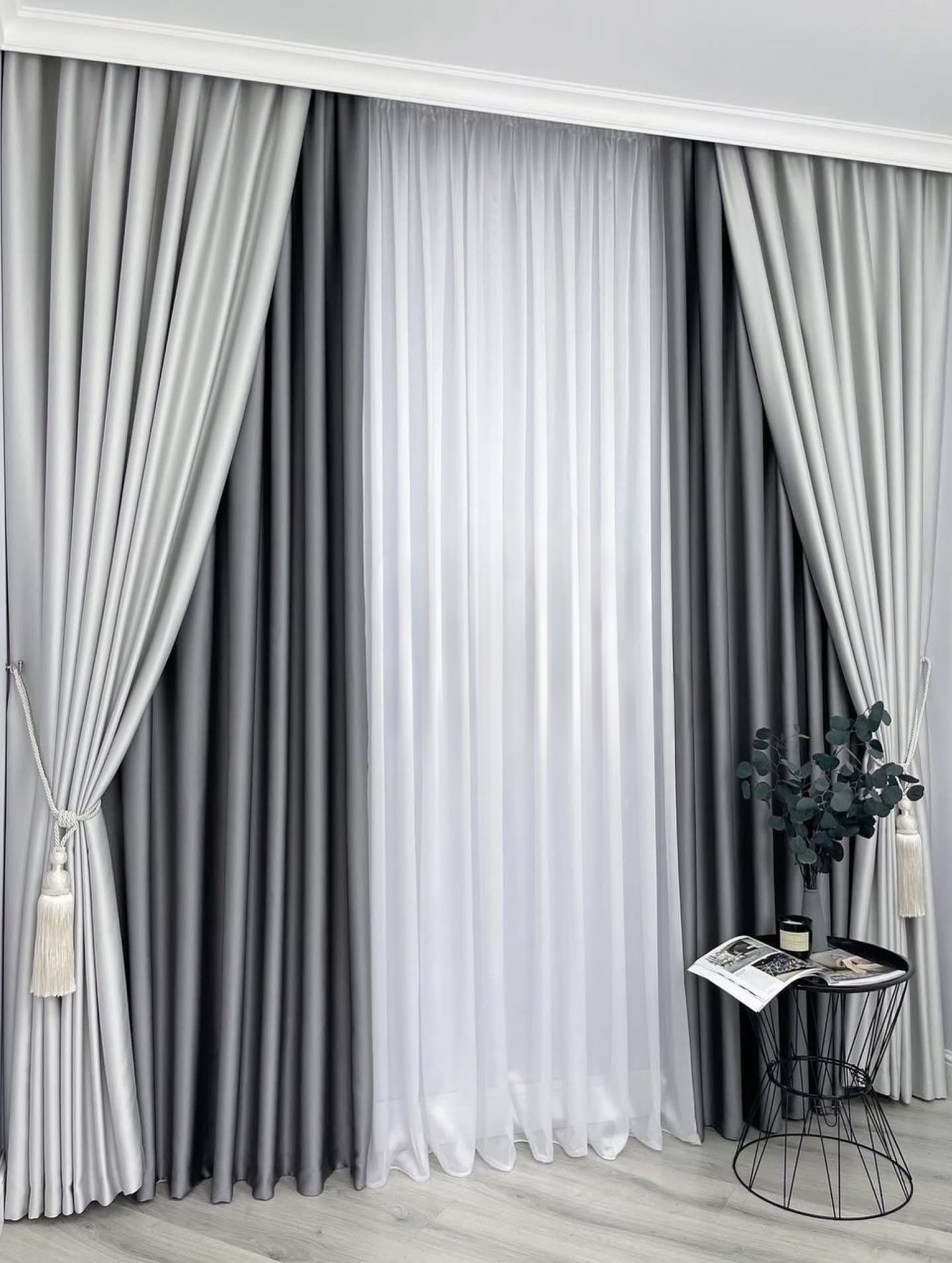 SET DRAPERIE CATIFEA CULOARE GRI CU ALB, PERDEA TRIPLUVOAL ALB. Cod. Produs: 32988