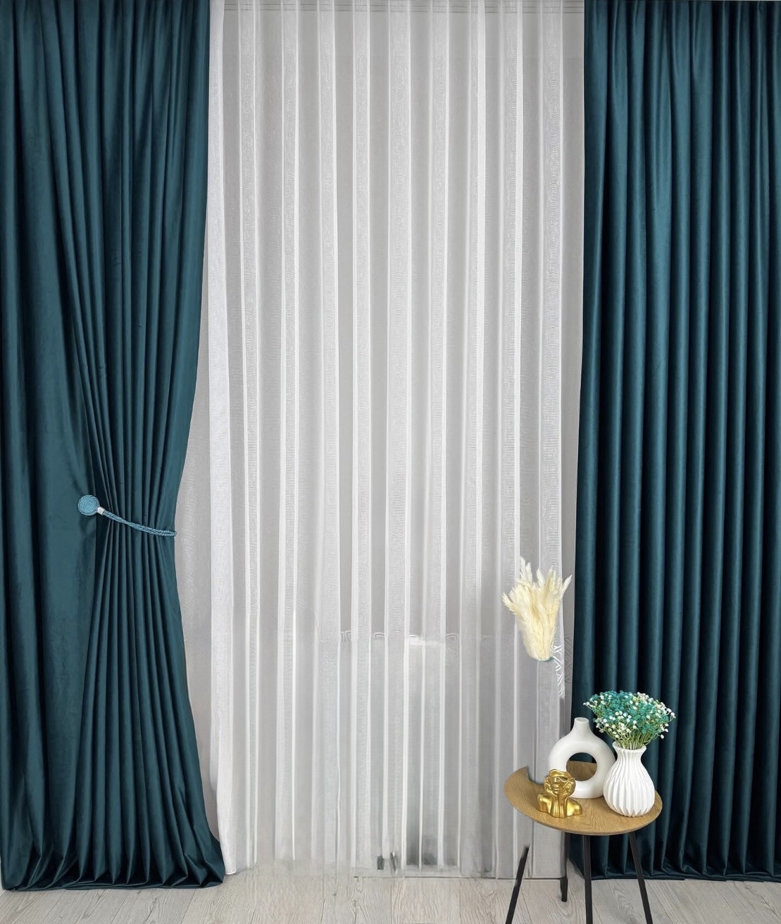 SET DRAPERIE CATIFEA CULOARE TURCOAZ , PERDEA TRIPLUVOAL ALB. Cod. Produs:300598