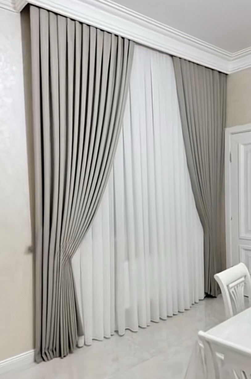 SET DRAPERIE CATIFEA CULOARE GRI PINCHARD , PERDEA TRIPLUVOAL ALB. Cod. Produs: 33291