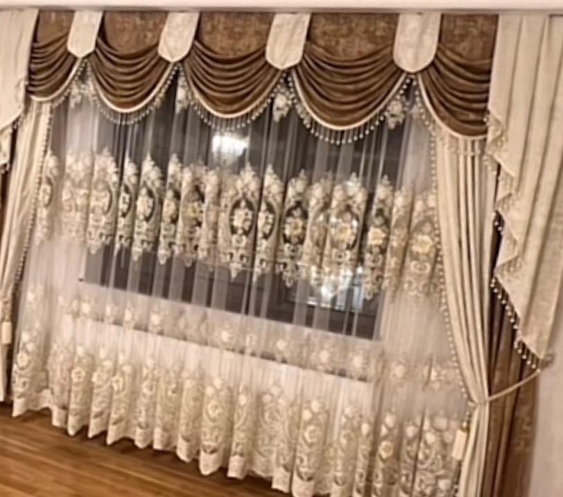 SET DRAPERIE CATIFEA , BEJ CU MARO, PERDEA 3D TULL BRODATĂ CREM PIETRICELE , PERLE, CATIFEA . Cod. Produs: 32897